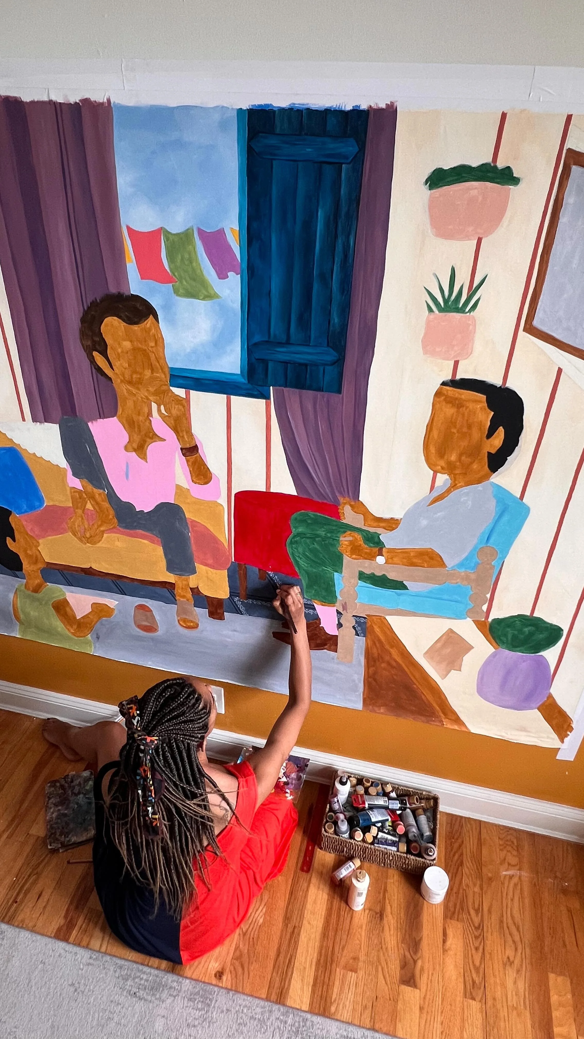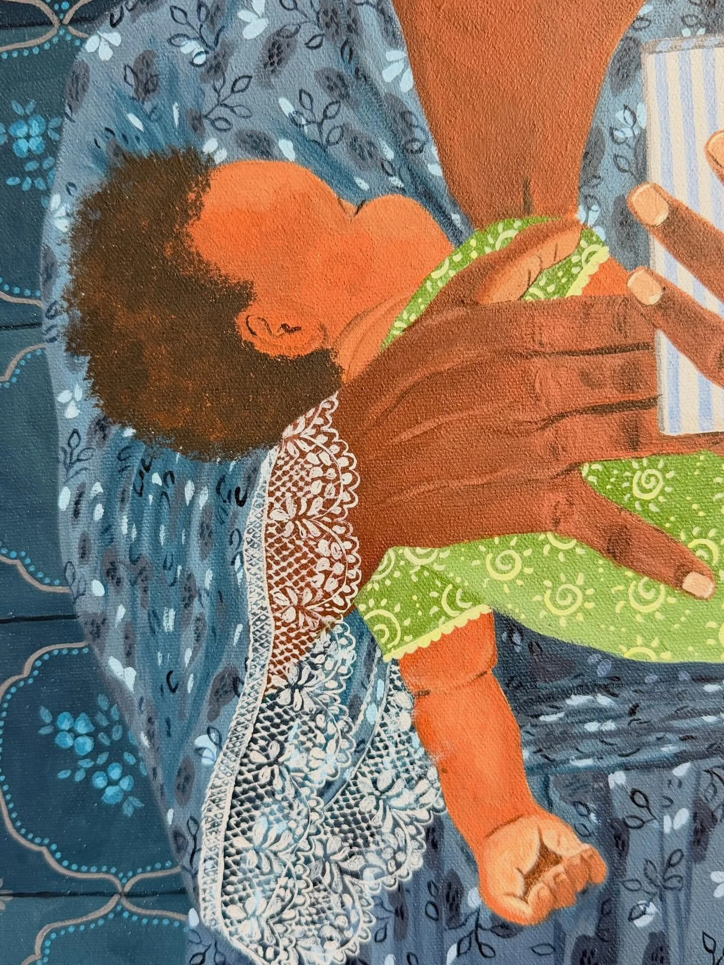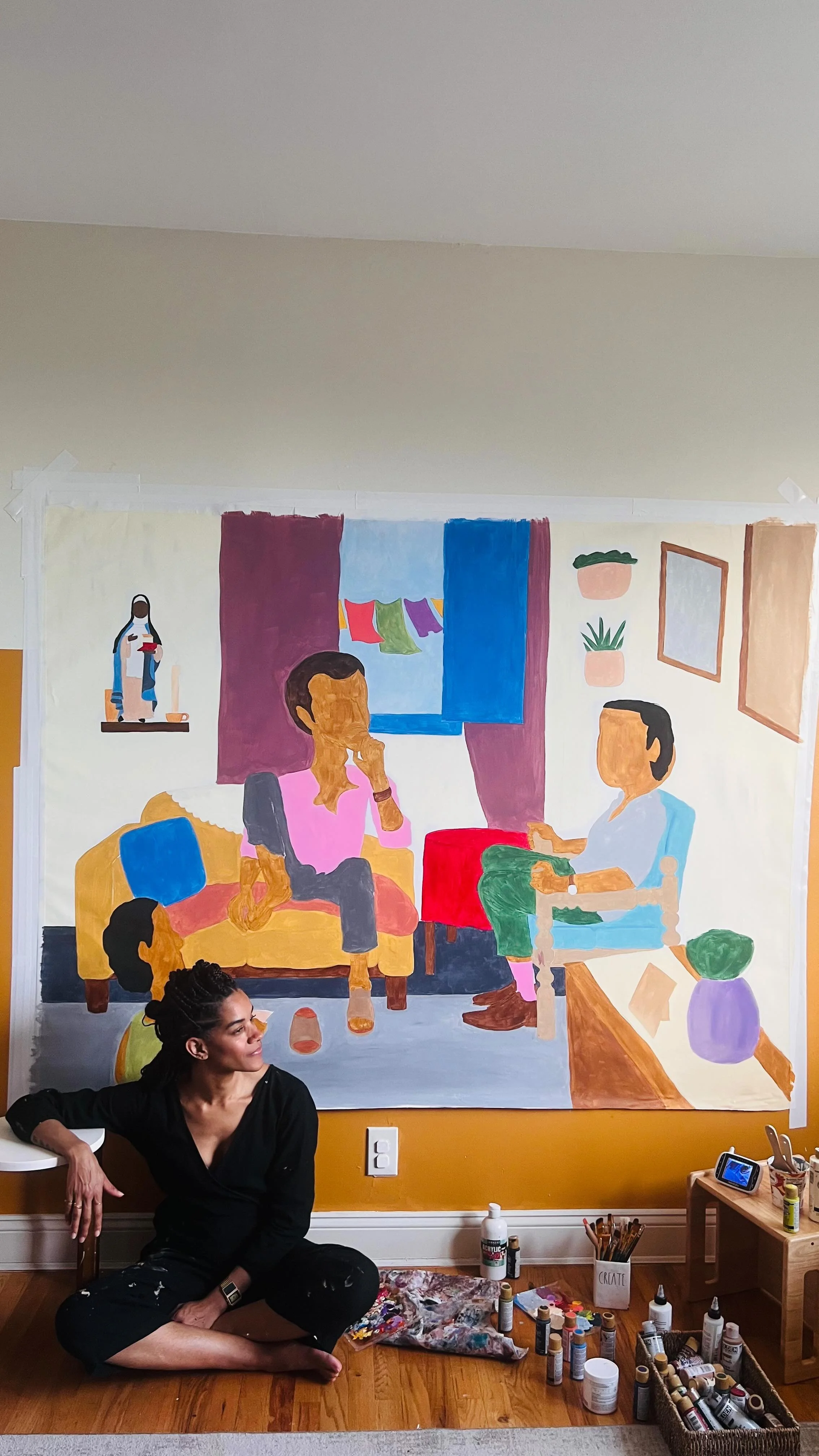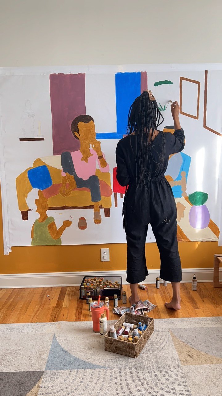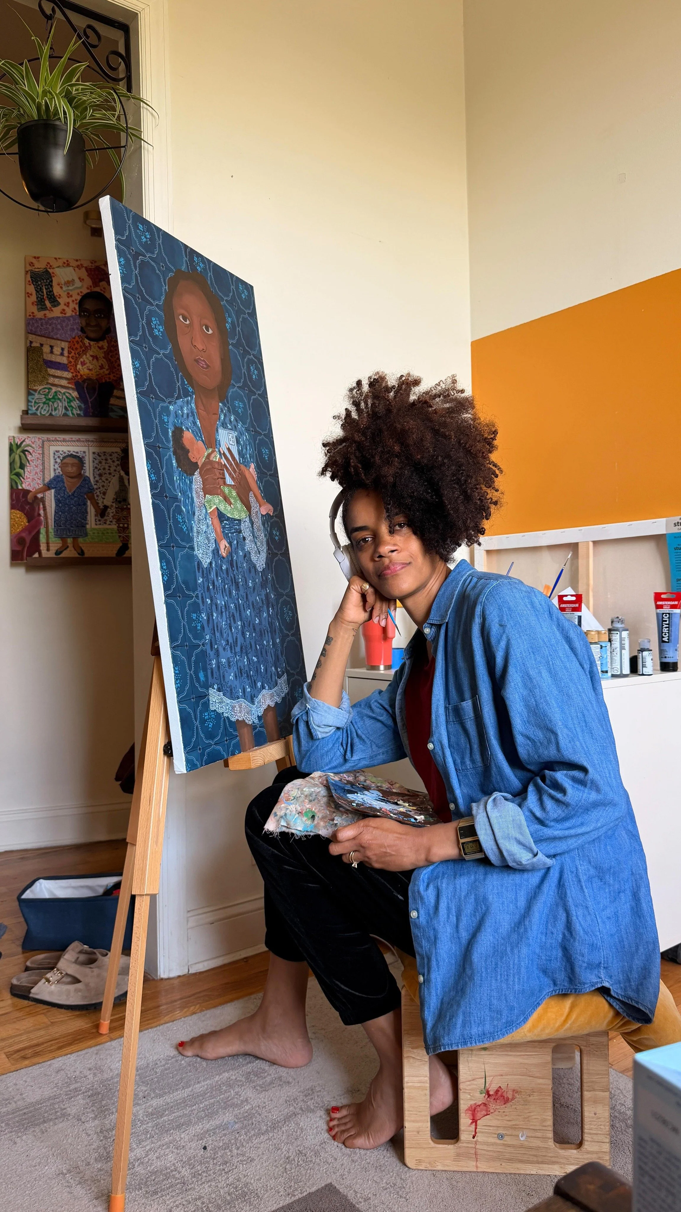 I create acrylic portraits of Black individuals experiencing ordinary yet deeply meaningful moments, aiming to capture the emotional weight of everyday life.